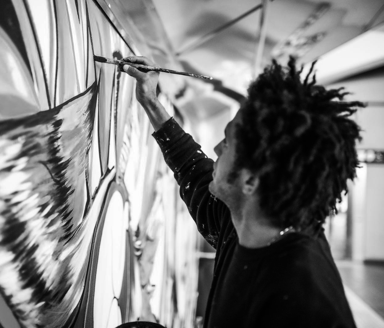His father, an art historian at the Universidad Oriente in Santiago de Cuba, is also an artist, a painter. Master, father, friend, source of inspiration, engine and flame that allowed Ascanio to embark on this path. His poetics revolves almost entirely around the concept he generated 'Climbing the future', represented by the silhouette of a stylised man, a powerful metaphor for humanity's journey into the future and in particular the role art plays in this journey. This visual representation captures the essence of the struggle, progress and aspiration that characterise both human life and artistic practice. Through this image, it invites us to reflect on the continuous pursuit of excellence, the overcoming of obstacles and the inexorable march towards the future. Art becomes a medium through which humanity explores, understands and shapes its inspirations and dreams. The ascent symbolises the creative process itself, a journey that is at once personal and universal, intimate and shared, transcending the limits of language and rational thought to touch something deeper. Ultimately, the use of a silhouette that scales and reaches into the future underlines the importance of art as a vehicle for hope, inspiration and change. It challenges us to look beyond the immediate horizon and imagine possibilities as yet unknown but no less exciting. Through his paintings and murals Ascanio explores themes related to life and the human condition, giving rise to numerous collaborations including urban redevelopment projects (street-art) during fashion week, live-painting for events and exhibitions, scenographic installations, and numerous interdisciplinary projects.
